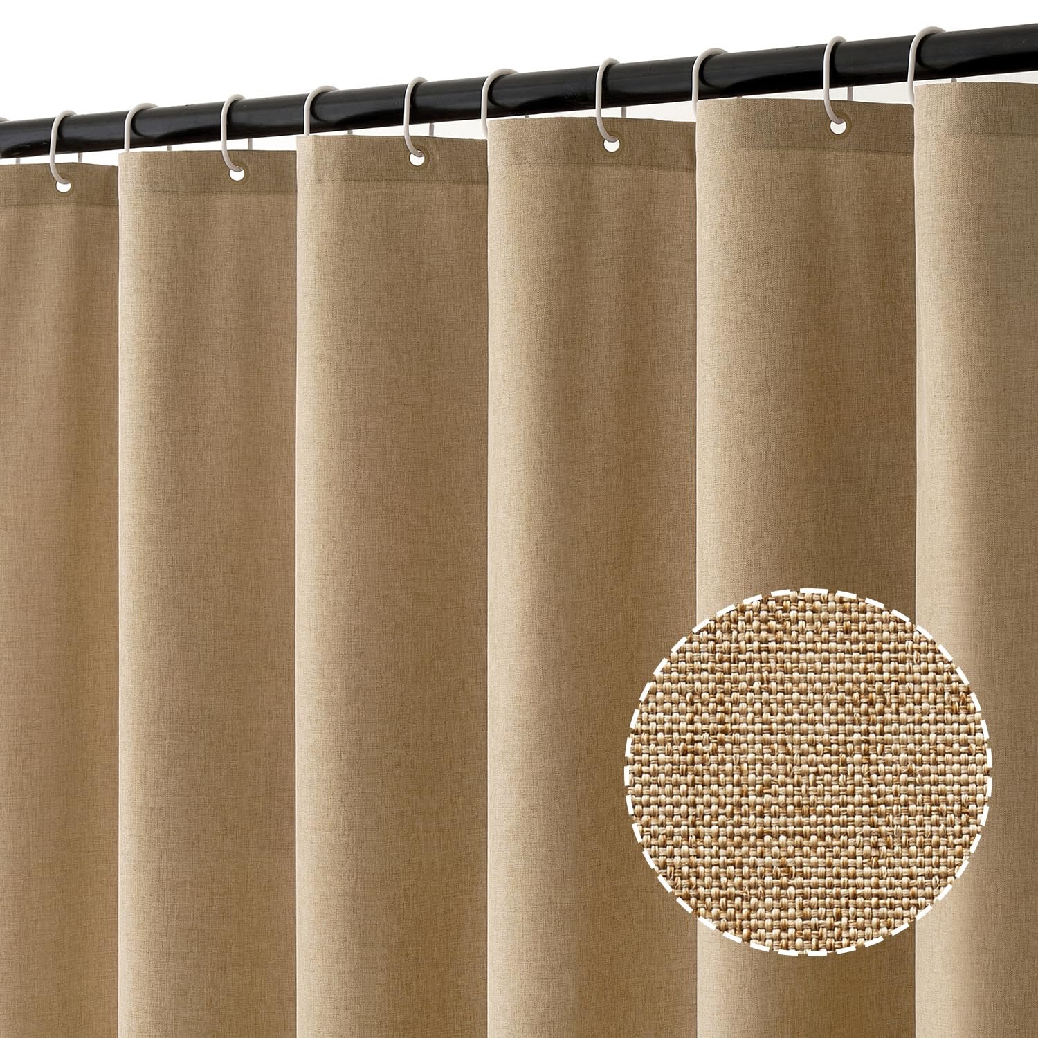 MIULEE drobės tekstūros dušo užuolaida 180 x 200 cm chaki, prabangios poliesterio vandeniui atsparios dušo užuolaidos, nepelėsinio plaunamo audinio, su 12 žiedų