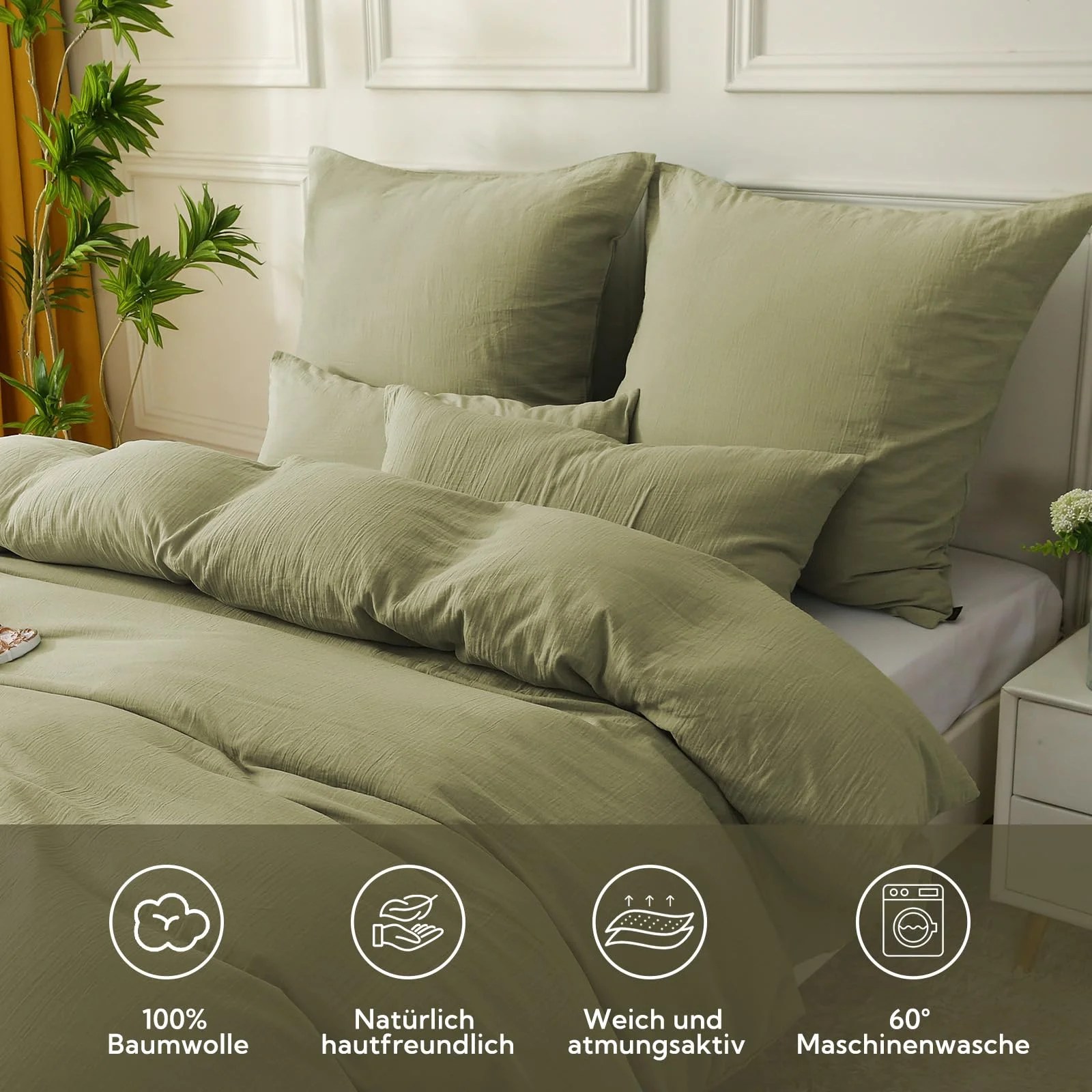 SOULFUL dvigubos muslininės patalynės komplektas, 155×220 cm medvilnė, 1 vnt. antklodės užvalkalas su 1 vnt. pagalvės užvalkalu 80×80 cm, OEKO-TEX patalynė jaspio pilkumo su užtrauktuku